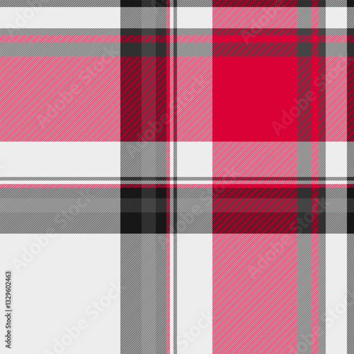 Vibrant pink, red, grey, and white plaid pattern. Perfect for textile design, fashion, website backgrounds, or any project needing a stylish and classic checkered texture.