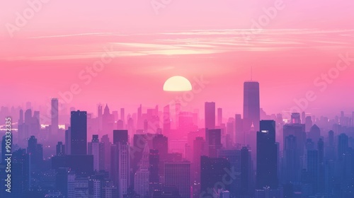 Vibrant Pink Sunset Silhouetting City Skyline - Urban Twilight Romance