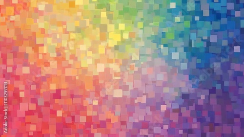 Vibrant pixel rainbow background seamless multicolor digital pattern with bright gradient squares for design and creative projects