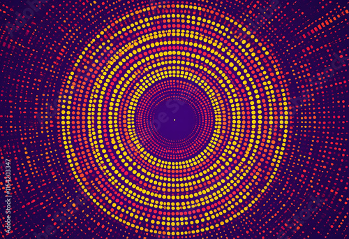 Vibrant Pixelated Radial Pattern with Purple, Yellow, and Red Gradient Background Design