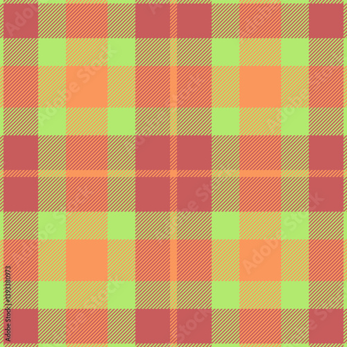 Vibrant plaid pattern in green, red, and orange hues. A classic textile design perfect for backgrounds, fabrics, or creating a rustic, homespun aesthetic.