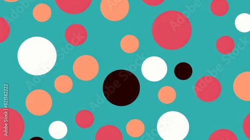 Vibrant polka dot pattern on turquoise background. Colorful circles in various sizes. Ideal for backgrounds and creative projects.