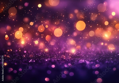 Vibrant Purple and Orange Bokeh Lights with Sparkles Creating a Magical Dreamy Atmosphere for Background or Decorative Use