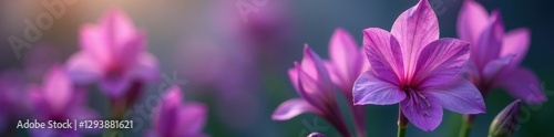 Vibrant purple freesias against blurred backdrop, delicate petals, soft, botanical, high resolution