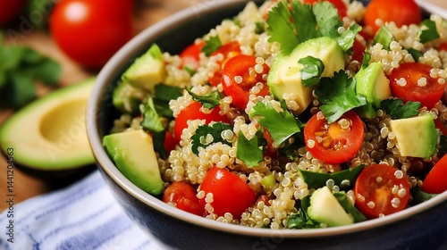 Vibrant Quinoa Salad with Avocado and Cherry Tomatoes in Rustic Bowl