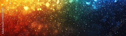 Vibrant rainbow abstract background with sparkling particles and a gradient of colors, perfect for artistic or festive designs.