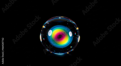 Vibrant Rainbow Bubble on Black Background: Abstract Sphere Graphic