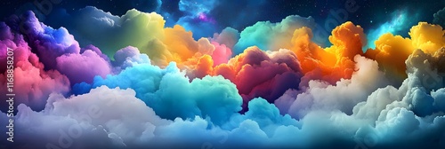 Vibrant Rainbow Cloudscape: A Dreamlike Celestial Canvas of Colors, Textures, and Light, Evoking Wonder and Serenity. Explore the Art of Digital Painting and Atmospheric Perspectives.