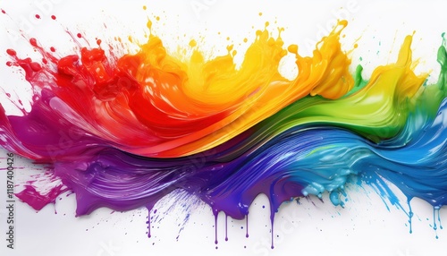 Vibrant Rainbow Paint Splash and Splatter Artwork on White Background A Colorful Explosion of Creative Energy