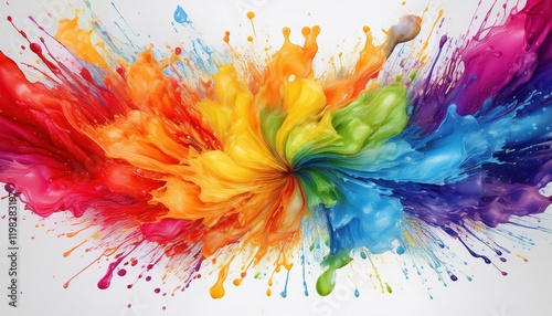 Vibrant Rainbow Paint Splash Explosion Against a White Background An Abstract Art Design Masterpiece showcasing a Spectacular Palette of Colors and Textures