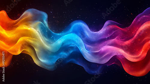 Vibrant Rainbow Psychedelic Gradient Wave on Black Background, Retro 1970s 1980s Music Cover Dance Party Poster, Colorful Abstract Design