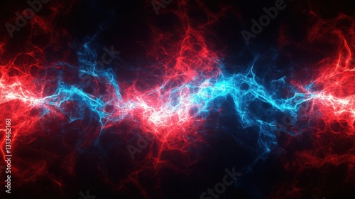 Vibrant Red and Blue Energy Lightning Against Dark Background