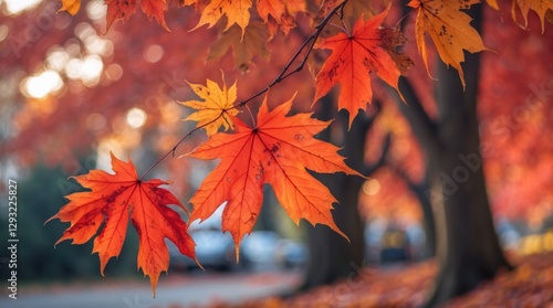 Vibrant red and orange maple leaves illuminate the autumn season amidst a beautiful natural backdrop capturing the essence of fall.