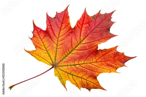 Vibrant red and yellow maple leaf autumn season isolated on transparent background