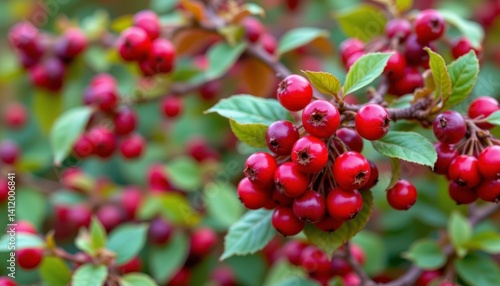 Vibrant Red Berries Surrounded by Green Leaves in Lush Nature Environment Displaying Natural Beauty and Freshness