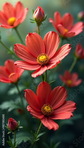 Vibrant Red Cosmos Flowers in Blooming Garden Phone wallpaper