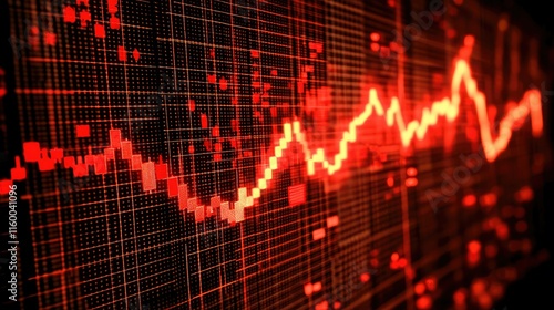 Vibrant Red Data Visualization with Graph Lines and Grid Background