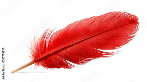 Vibrant red feather on white background, a detailed macro photograph of texture and contrast