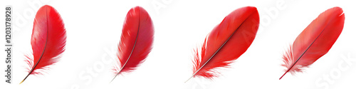 Vibrant red feathers floating and suspended in the air showcasing the delicate wispy and ethereal nature of these organic fibrous plumes The feathers have a romantic bohemian and aesthetic