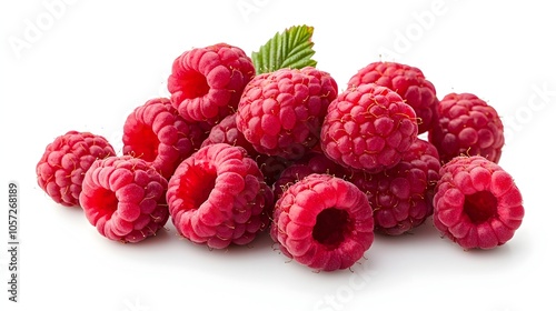 Vibrant red fresh raspberry isolated on a plain white background The image showcases the juicy ripe and flavorful nature of the fruit making it ideal for healthy food diet
