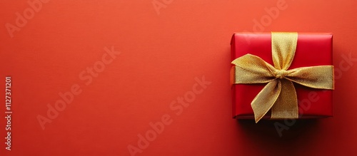 Vibrant red gift box adorned with a shimmering gold ribbon for festive occasions and celebrations