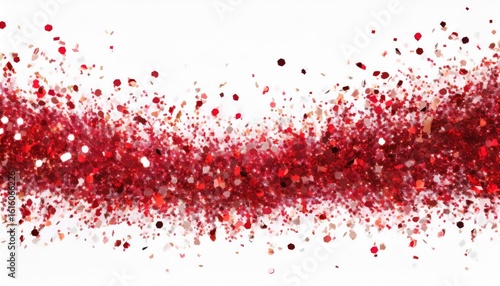 vibrant red glitter powder trail with sparkling square particles on white background for creative design and decoration