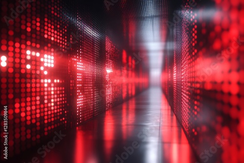 Vibrant red light display in a modern digital corridor creating a futuristic atmosphere
