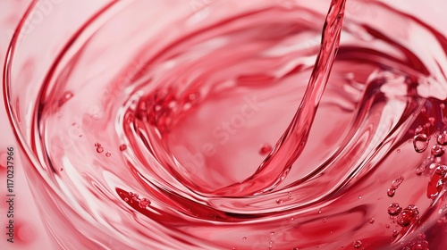 Vibrant Red Liquid Splash in Clear Glass with Bubbles and Reflections