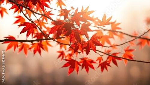 Vibrant Red Maple Leaves Illuminated By Autumn Sunlight