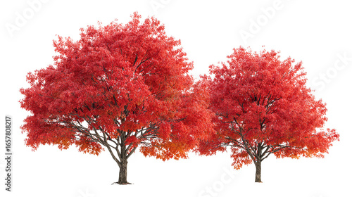Vibrant Red Maple Trees background isolated on a Transparent background, PNG file.