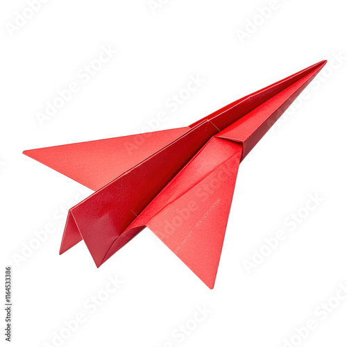 vibrant red paper airplane. showcasing a sleek and aerodynamic design it is crafted from folded paper. emphasizing creativity and the art of origami the airplane's pointed nose and wide wings suggest