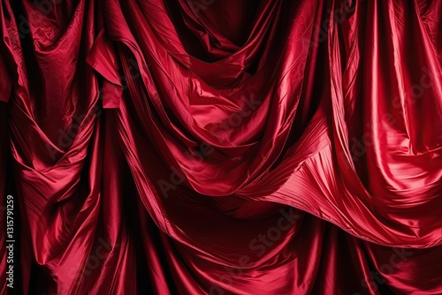 Vibrant Red Silk Textured Background with 3D Drapery Effects