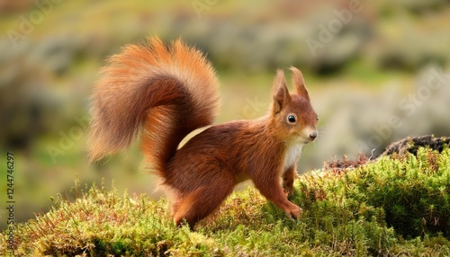 Vibrant Red Squirrel Amidst Bushy Tail in Yorkshire Dales A Glimpse of Winters Majesty in Englands Enchanting Landscape characters
