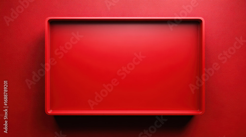 Vibrant red tray rests against matching red background, creating striking minimalistic presentation that evokes sense of boldness and simplicity