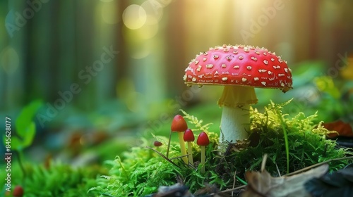 vibrant redcapped amanita muscaria fly agaric mushroom in forest closeup