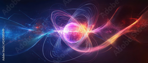 vibrant representation of theoretical physics, showcasing subatomic particles and quantum waves in colorful, dynamic composition. image evokes sense of wonder and exploration in realm of science