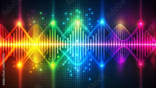 Vibrant rhythmic waveform design featuring colorful sound waves and geometric shapes on a seamless repeating background perfect for music themes.