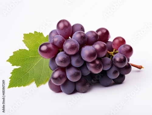 Vibrant Ruby Red Grapes Next to a Lone Leaf: A Study in Nature's Color Palette Generative AI
