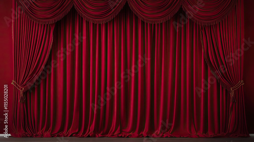 Vibrant scarlet red curtain or fabric serving as a backdrop.