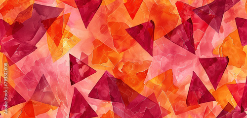 Vibrant seamless pattern of abstract geometric triangles and polygons in warm colors.