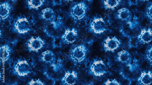 Vibrant seamless tie dye pattern featuring dark navy and indigo hues ideal for fabric design and creative projects