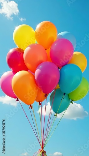 Vibrant set of helium balloons in rainbow colors on clear background, isolated, party
