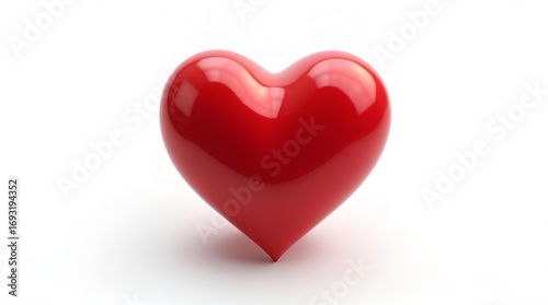 Vibrant Shiny Red 3D Heart Symbol of Love and Romance Isolated on a Clean White Background Perfect for Valentine's Day, Affectionate Concepts, and Passionate Design Elements