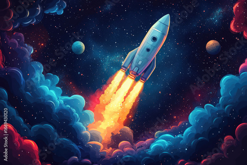 Vibrant Spacecraft Flying Through a Universe of Dreams and Colors