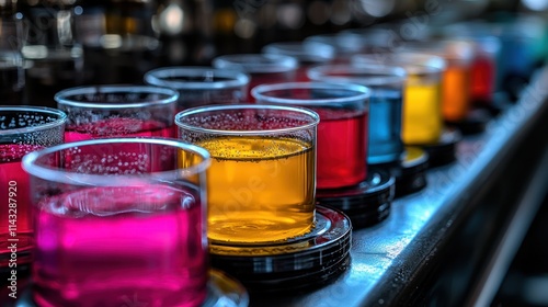 Vibrant Spectrum: A Colorful Array of Liquids in Glass Containers