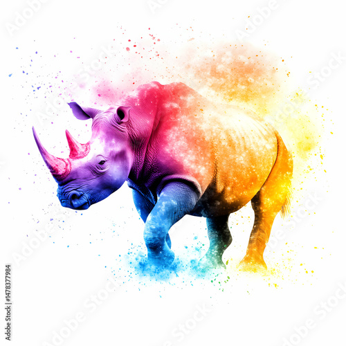 Vibrant spectrum depiction of a rhinoceros, artistic chromatic exploration