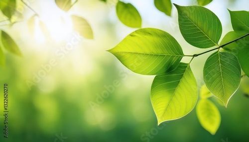 Vibrant Springtime Greenery Lush Emerald Leaves Draped in a Soft Sunlight Gleam, Embracing Natures Renewal Amidst a Rustic Woodland Backdrop.
