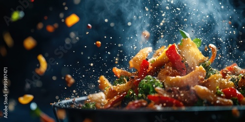 Vibrant stir-fried vegetables and crispy meat create an explosive culinary experience filled with color and flavor.