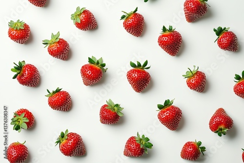 Vibrant strawberries scattered on clean surface showcase freshne