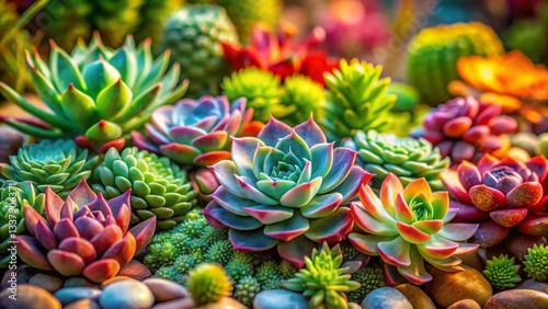 Vibrant Succulent Bouquet: Colorful Miniature Garden Arrangement with Decorative Stones